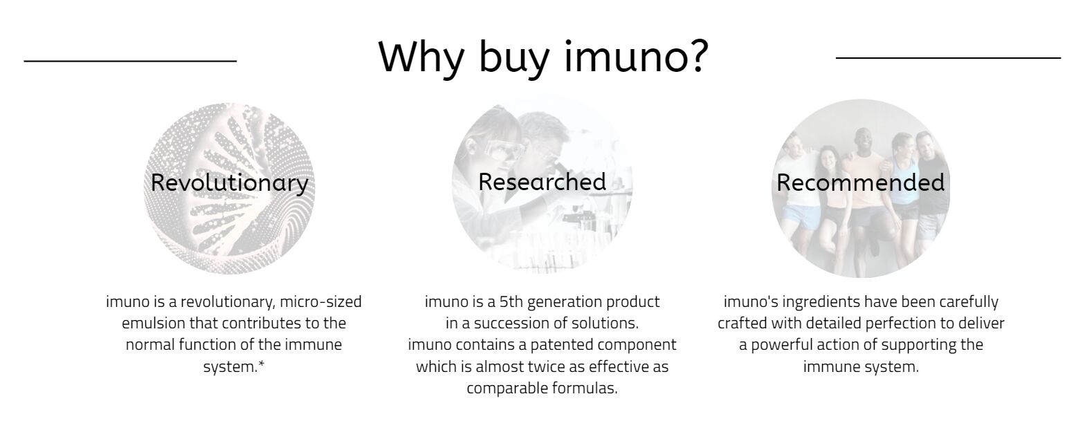 imuno® is designed by Molecular Biologist, Dr Marco Ruggiero, MD. PhD. Author of peer-reviewed scientific papers on immunotherapy and quantum biology. Imuno is the revolutionary supra-molecular structure that reproduces the self-assembly of cell components. This delivers the combined molecules, at the same time, at the required dose, to their biologic targets.