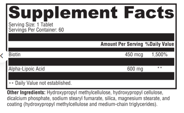 In addition, biotin supports the function of alpha-lipoic acid in regulating glucose metabolism