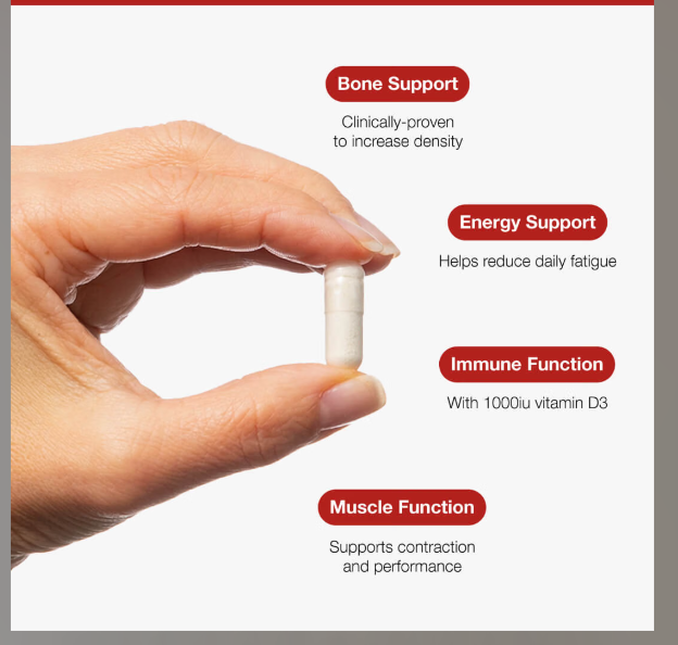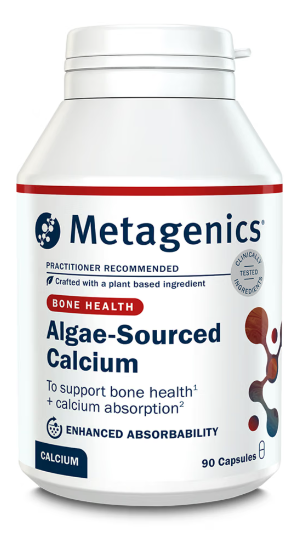 Plant-based calcium formula providing natural calcium and magnesium from red ocean algae, with additional boron and vitamin D3.