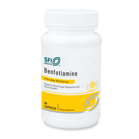 This fat-soluble form of vitamin B1 has higher bioavailability compared to water-soluble forms. Benfotiamine inhibits several pathways involved in glucose-induced vascular changes and supports healthy neuron function.