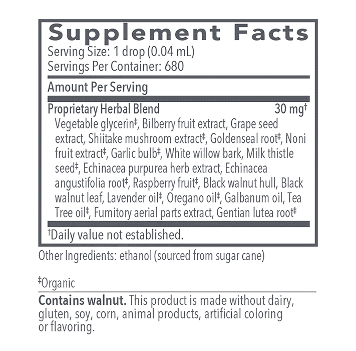 | Directions | Begin with 1 drop and gradually increase up to 5 drops 3 times per day or as directed by your healthcare professional. Children may use 1 drop per 10 lbs. of body weight per day, divided into 2 doses. |