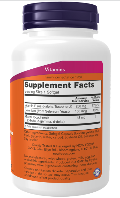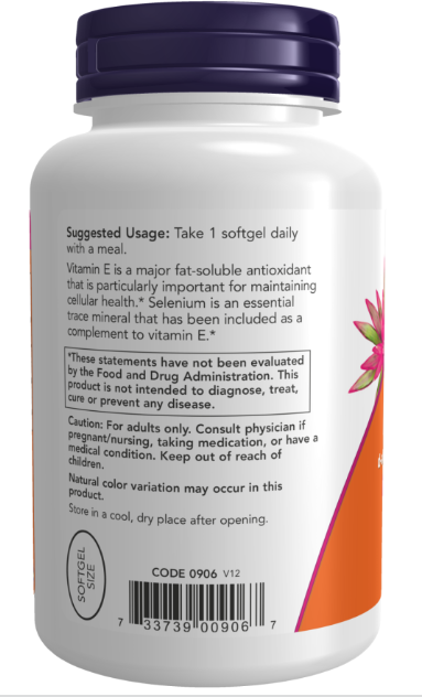 Now Foods Vitamin E-400 delivers 268 mg (400 IU) of vitamin E per softgel, providing powerful antioxidant support to help protect cells from oxidative stress caused by free radicals.