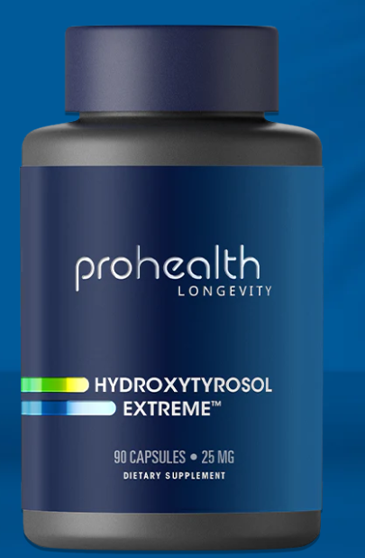 A small molecule rapidly absorbed into the bloodstream and tissues, hydroxytyrosol is also able to cross the blood-brain barrier, supporting systemic defense against free radical damage.* ProHealth’s Hydroxytyrosol Extreme™ contains 25mg of hydroxytyrosol per capsule, derived from cultivated organic olive leaf.