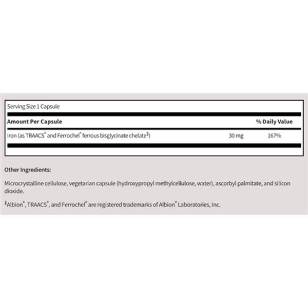 Iron (as Ferrochel® ferrous bisglycinate chelate‡) 30 mg 167%