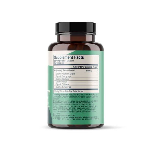 Inspired by our Immune Assist Blend for humans, K9 Immunity is tailored specifically for dogs, offering a blend of Agaricus blazei, Reishi, Maitake, and more. These mushrooms have long been appreciated for their natural compounds that contribute to overall vitality. Certified organic and grown in the USA, this blend is designed to support your furry friend’s wellness with care and intention.