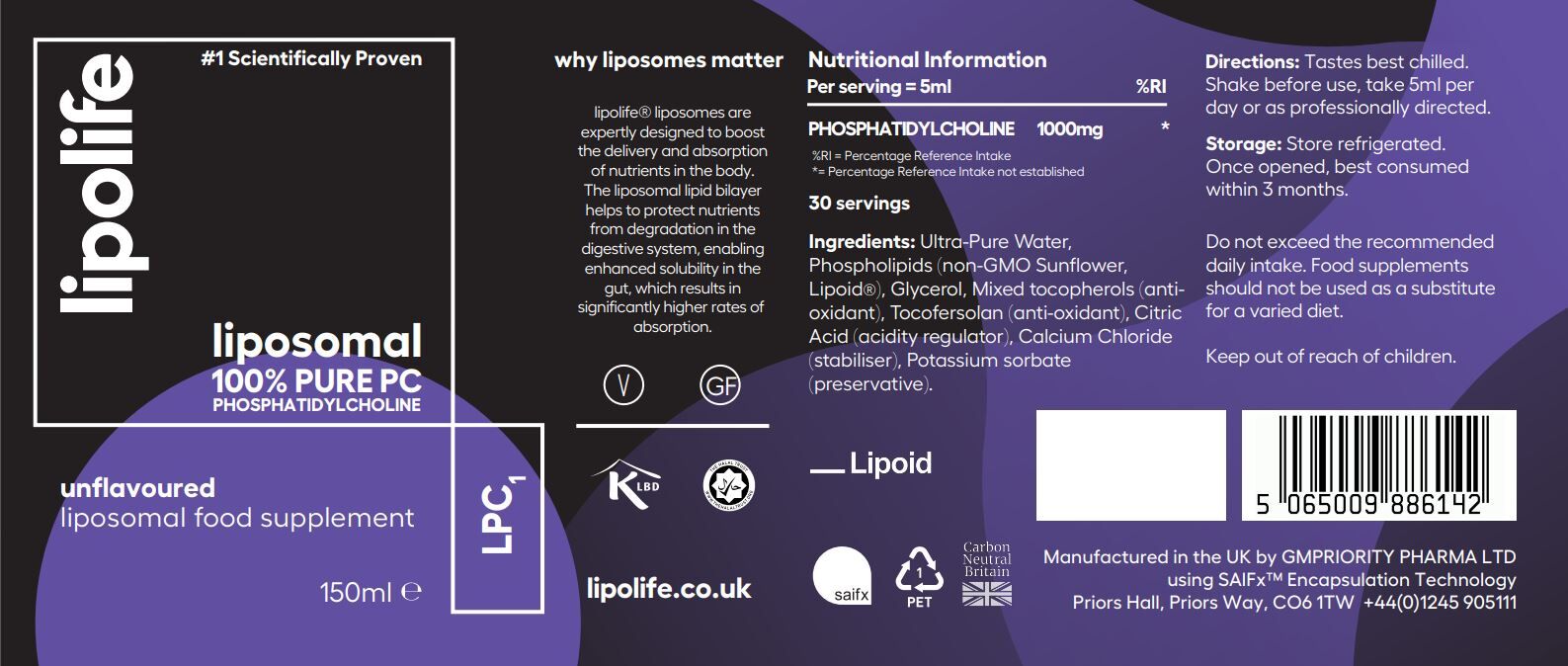 Liposomal 100% Pure Sunflower Phosphatidylcholine (LPC1) – 150ml – lipolife