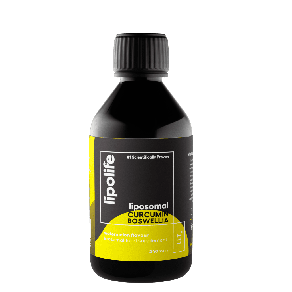 | Ingredients | Ultra-Pure Water, Phospholipids (non GMO Sunflower, Lipoid), Olive Oil Polyphenols (as Hydroxytyrosol, Hytolive™) Curcumin (95% Curcuminoids, C3 Complex), Boswellia Serrata (AquaLOX®), Xylitol (sweetener), Glycerol, Ethanol, Natural Watermelon Flavouring, Potassium sorbate (preservative), D-alpha-tocopherol (antioxidant). |