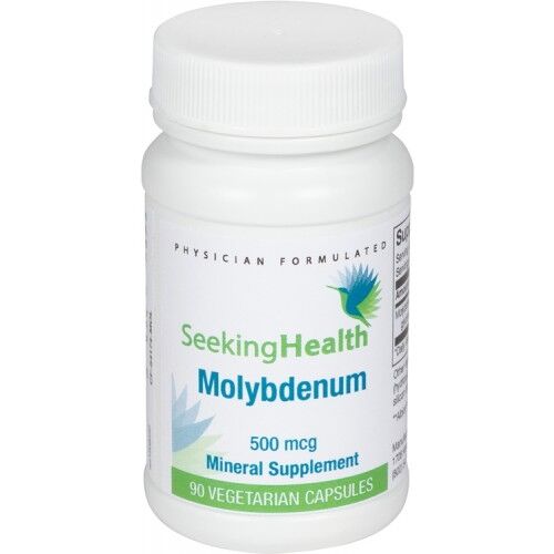 Molybdenum 500 by Seeking Health provides 500 mcg of molybdenum (as molybdenum glycinate chelate) in each easy-to-swallow vegetarian capsule. Molybdenum is an essential trace mineral. In the human body, molybdenum is found in the bones, liver, and kidneys. Molybdenum plays a role in a number of important bio-chemical processes, like waste processing in the kidneys, development of the nervous system, and the activation of enzymes that are involved in breaking down food to produce energy.* Molybdenum may also help support normal metabolism of fats and carbohydrates.* It is necessary for maintain normal iron levels and utilization in the body due to its involvement in the enzymatic process that mobilizes iron form the liver reserves