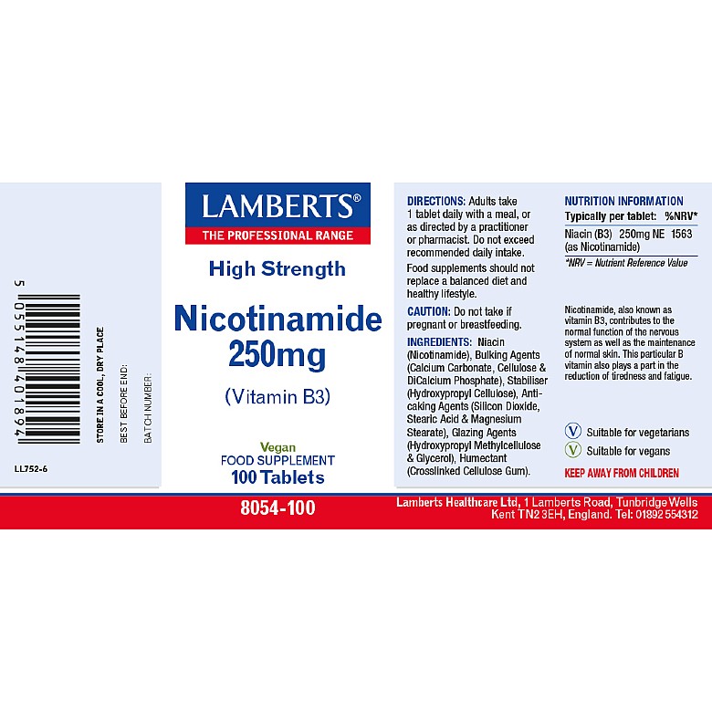 Nicotinamide (Vitamin B3) 250mg – 100 Tablets – Lamberts