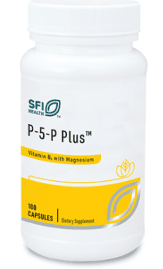 Pyridoxal 5’-Phosphate (P-5-P, or PLP) is the biologically active form of vitamin B6. It is formulated with highly bioavailable bisglycinate magnesium, an essential mineral that assists in B6 metabolism. Magnesium bisglycinate chelate is well tolerated and easily and comfortably absorbed without GI tissue irritation. P-5-P Plus is a unique formula designed to support the health and function of the brain, nervous system, blood vessels, skin, and eyes.