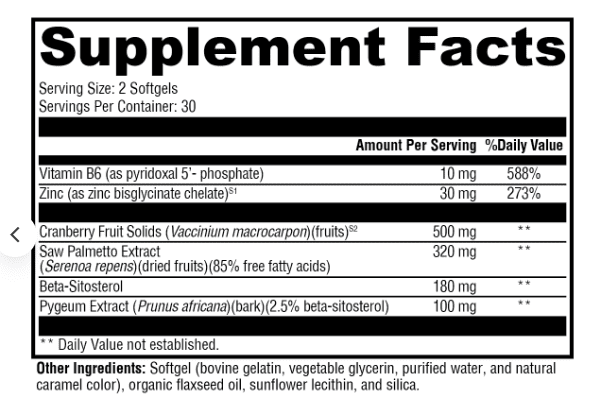 This formula features FLOWENS®—a full-spectrum cranberry powder optimized for men’s health—combined with beta-sitosterol, pyridoxal 5’-phosphate, TRAACS® zinc bisglycinate chelate, and highly concentrated, standardized extracts of saw palmetto and pygeum.