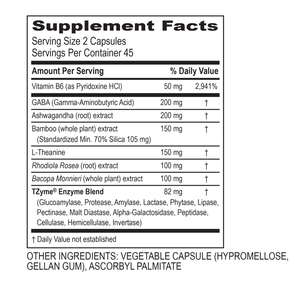 ReZEN is an advanced Transcendence™-class supplement designed to promote calm, focus, and emotional balance in times of stress. This unique formula blends adaptogenic herbs and soothing nutrients including Ashwagandha, Rhodiola rosea, Bacopa monnieri, L-Theanine, GABA, and vitamin B6. Together, these ingredients support healthy adrenal function, help regulate cortisol levels, and encourage a relaxed yet alert state of mind. The addition of the Tzyme™ enzyme blend enhances absorption, allowing the body to fully benefit from each ingredient. ReZEN is ideal for anyone seeking natural stress relief and improved mental clarity without drowsiness or dependency. It’s vegetarian-friendly and free from common allergens such as dairy, soy, wheat, and peanuts, making it a gentle and effective option for maintaining resilience and emotional well-being in today’s fast-paced world.