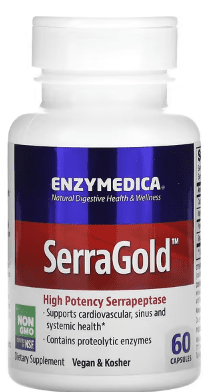 SerraGold contains high-potency Serrapeptase combined with a blend of proteolytic enzymes known to support mobility, immune function, and cardiovascular, sinus and systemic health. The vegan serrapeptase in SerraGold eliminates the need for enteric coating.