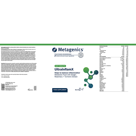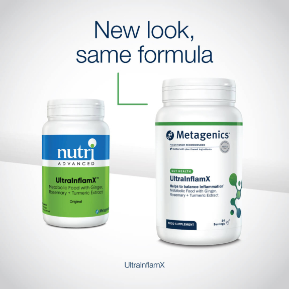 UltraInflamX contains a targeted, unique combination of herbal extracts that includes curcumin from turmeric. Curcumin helps support and manage inflammatory processes within the body, and can also support digestion. Rosemary has traditionally been used to support liver function and digestion; whilst providing antioxidant properties. Ginger is well-known for its calming, warming effect that may aid digestion. Green tea extract may protect the body from free radical damage, and have a positive effect on metabolism too. Boswellia may be protective and soothing to the digestive tract, along with Hops which has a long traditional use for gut support.