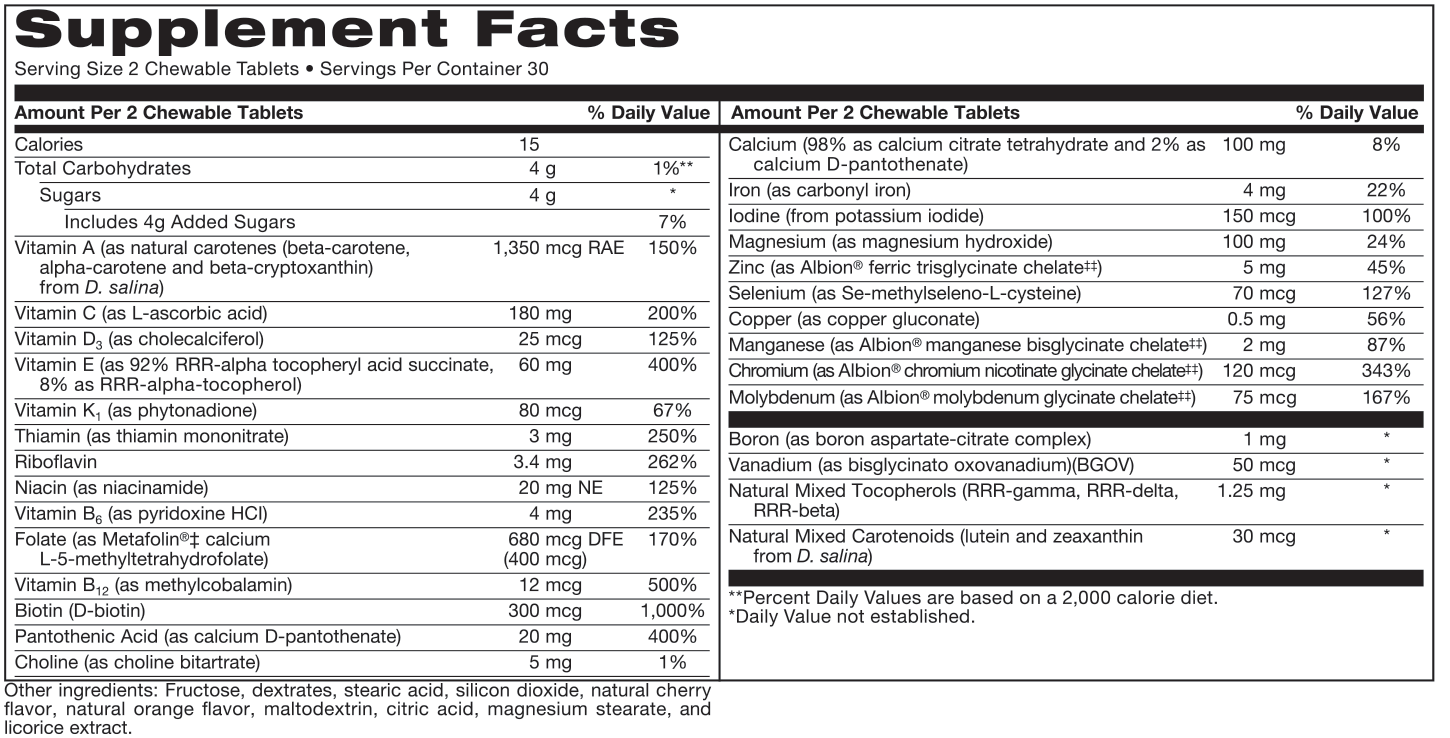 VitaChews contain higher potencies for certain nutrients than typically found in most other children’s multivitamins and many adult formulations.
