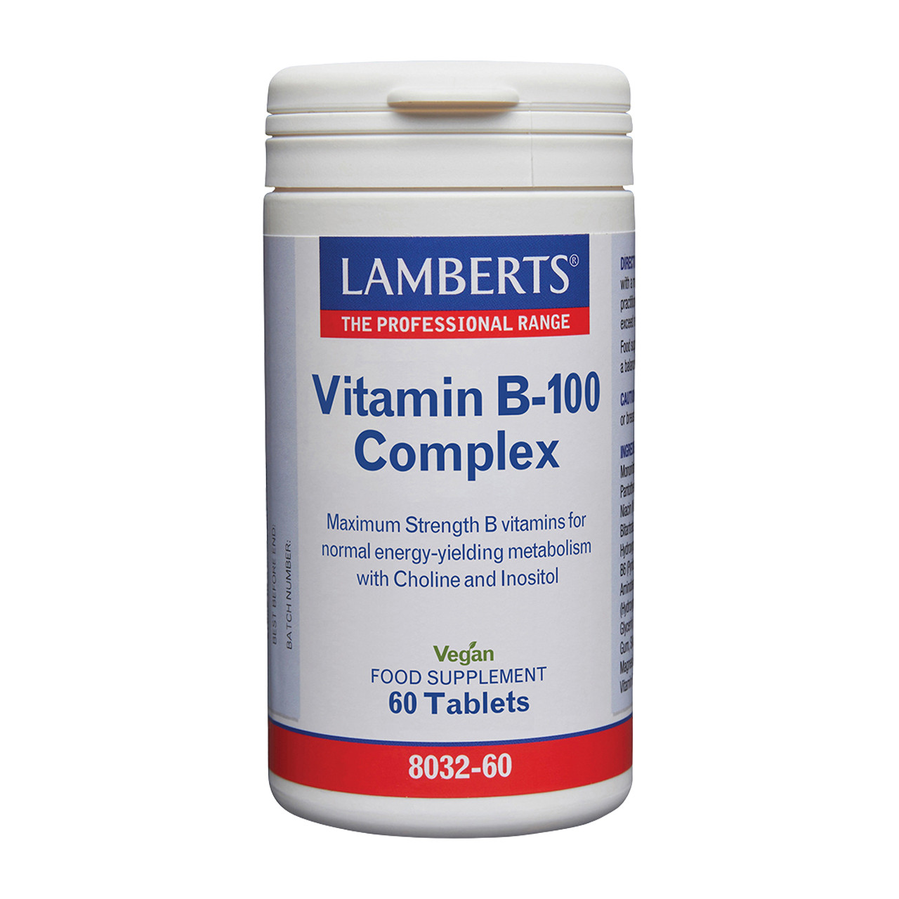 Lamberts® Vitamin B-100 Complex is a high strength product that is useful in situations where someone requires a fast boost to their intake of B vitamins. In most situations this product should be used for short term supplementation, typically two months, after which time our B-50 complex will provide adequate levels of the B vitamins. Several of the B vitamins are known to contribute to the normal functioning of the immune system and to normal psychological function. Others are recognised as contributing to the reduction of tiredness and fatigue as well as the maintenance of normal skin.